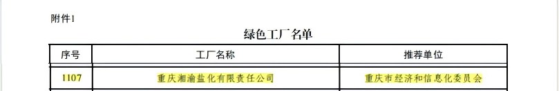 近日,工业和信息化部公布2024年度绿色制造名单,湖南盐业集团所属雪天盐业重庆湘渝盐化有限责任公司(以下简称“湘渝盐化”)成功通过评价认定,荣膺“国家级绿色工厂”称号。