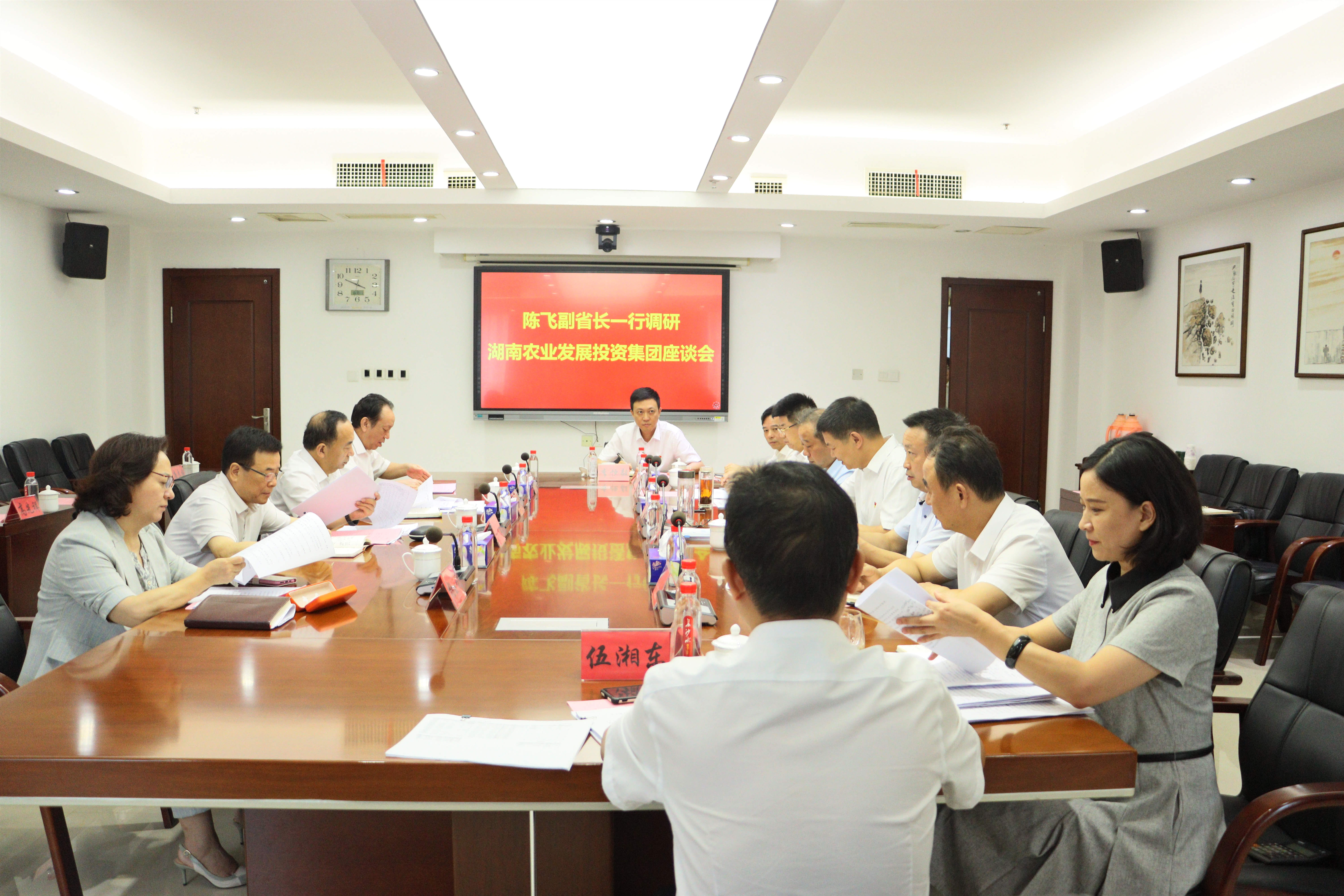 8月10日下午,省政府副省长、省自拍流出 党委书记陈飞一行到农业发展集团开展现场办公。省自拍流出 党委副书记、主任丛培模,党委副书记、副主任杨晓喻,党委委员、副主任张美诚等陪同。