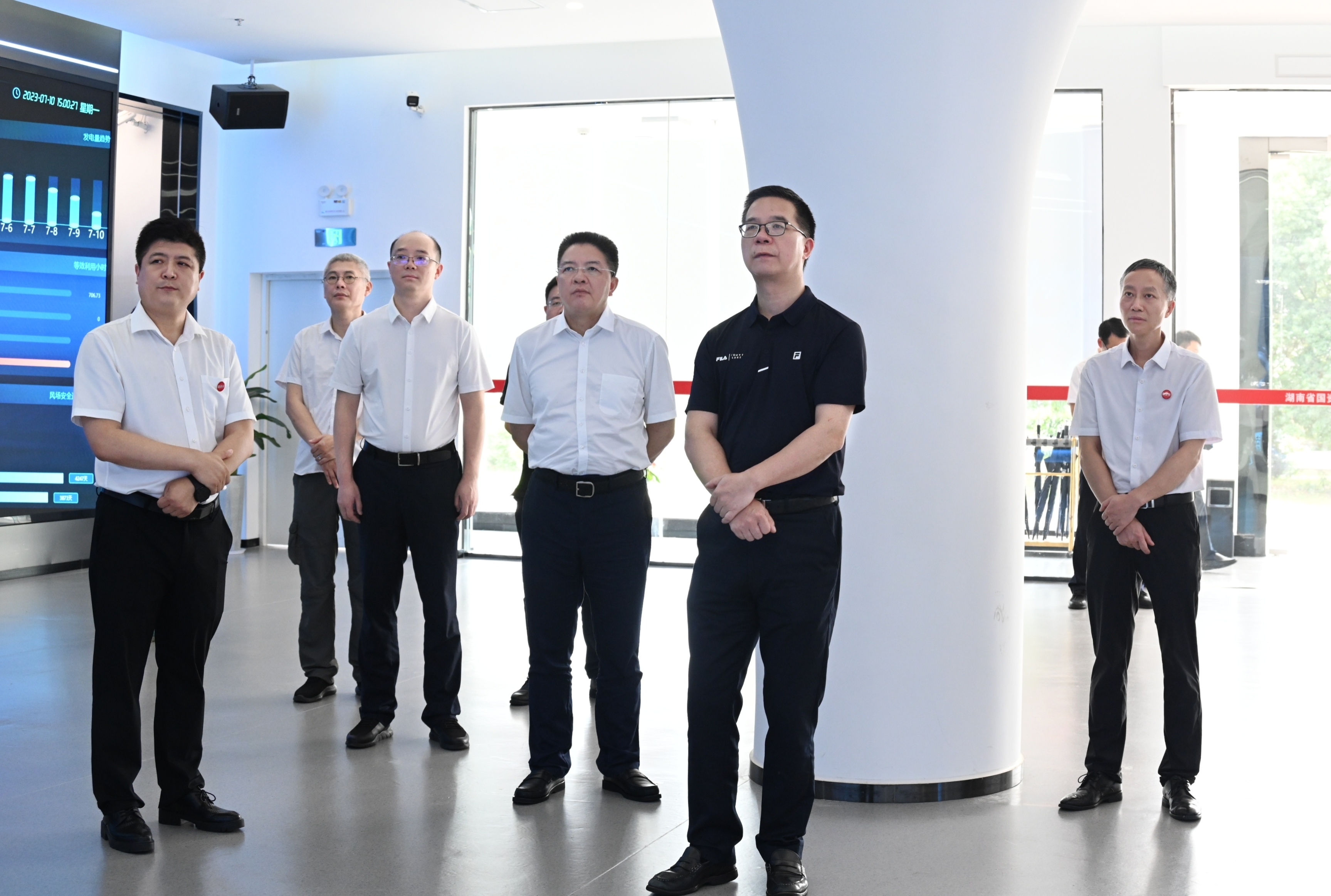 图:肖文伟一行在湖南省“国资云”展示中心观看操作演示