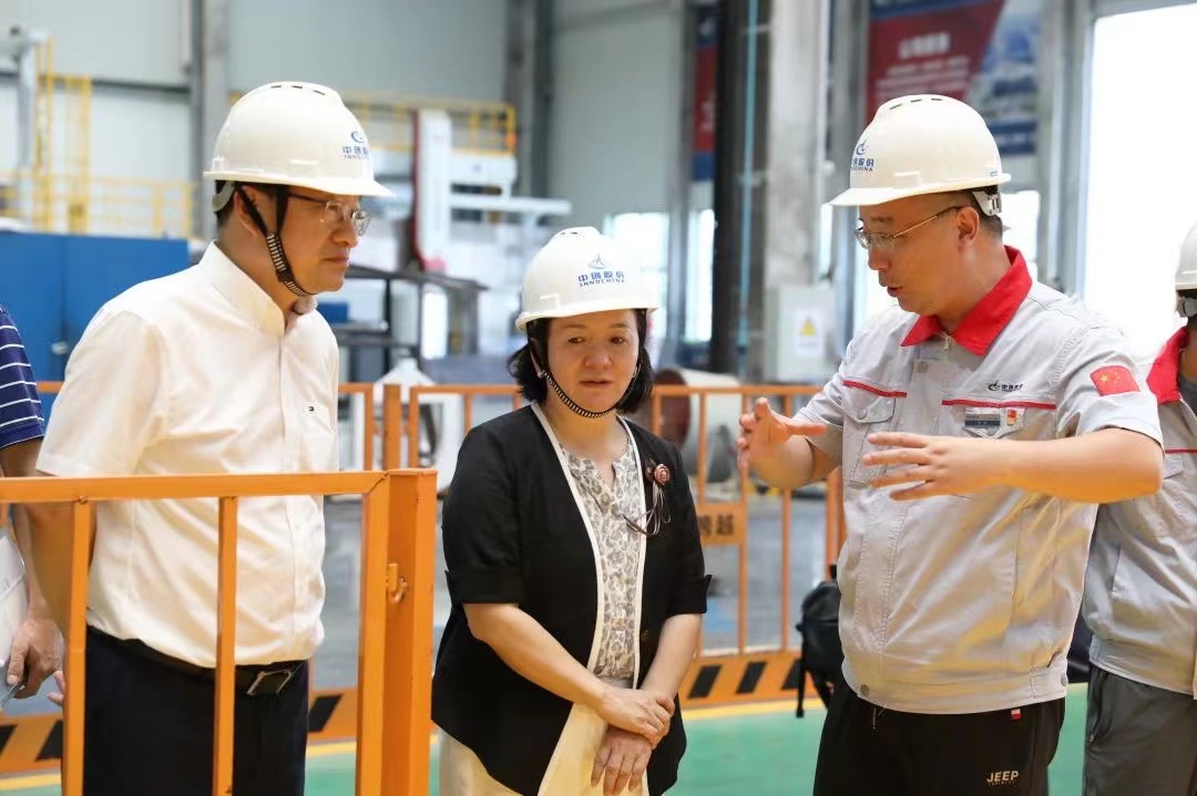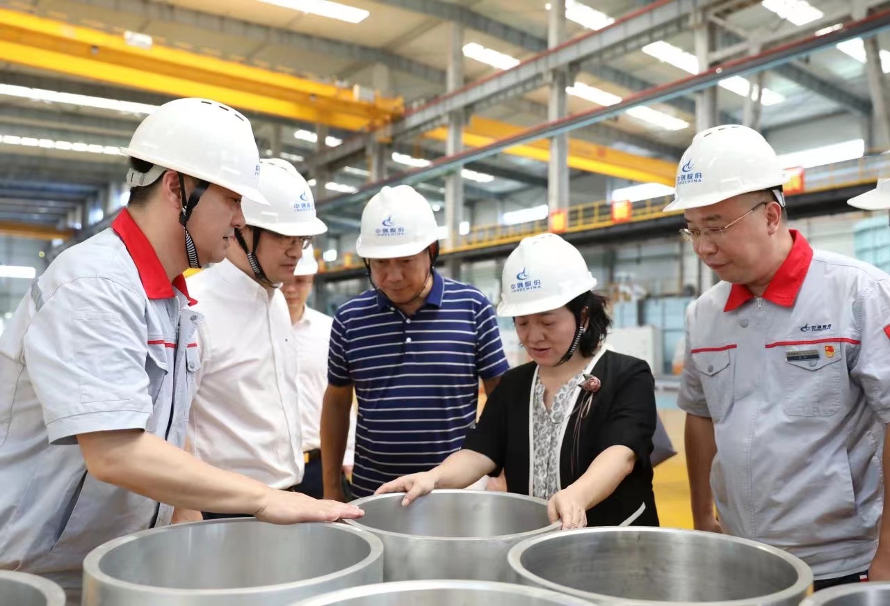 杨晓喻一行重点参观了公司的产品展示厅、挤压厂、环锻厂及机加厂,听取了刘敬东董事长关于人才团队建设、核心技术攻关、重点市场开拓等方面的汇报,并就科技成果转化和重大技术突破等情况与黄诚总经理进行深入交流。